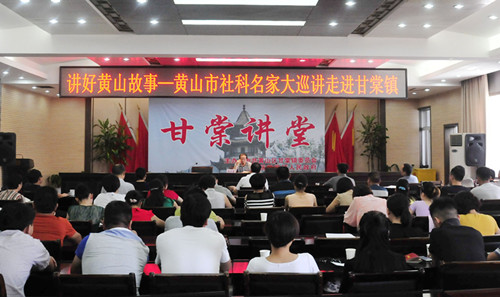 8月25日,由市社科联组织的以“弘扬社会主义核心价值观、传播徽州优秀传统文化”为主题的“讲好黄山故事——黄山市社科名家大巡讲”活动来到黄山区甘棠镇,为镇机关广大党员干部、入党积极分子和各村“两委”负责人共100余人开展了一场“学习贯彻习总书记重要讲话精神,培育践行社会主义核心价值观,建设更美更富更文明的黄山”主题宣讲。