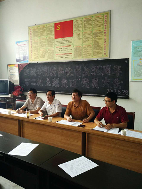 6月28日上午,在歙县昌溪乡万二村党总支举行的“纪念中国共产党成立96周年”大会上,市社科联副主席、万二村党总支第一书记、扶贫工作队队长吴清健,为全村70多位党员和入党积极分子上了一堂题为《不忘初心,牢记党员职责与使命》的党课。