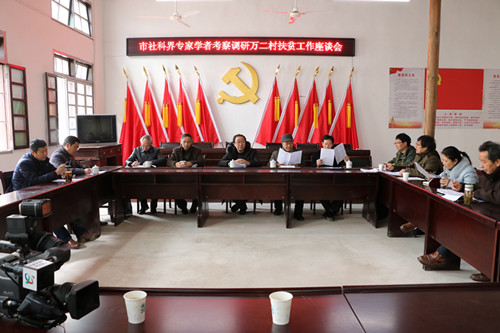 调研组一行首先在社科联副主席、万二村扶贫工作队长吴清健的引导下,实地行走了村中古道,近距离接触了石块砌成的老屋基和依山而建的阶梯式民房,同时深入到贫困户家中,面对面交心,了解生产生活状况。随后,在村委会召开座谈会,为万二村的发展规划建言献策。