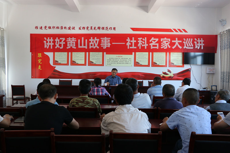 6月1日,“讲好黄山故事——社科名家大巡讲”活动走进祁门文堂村。我市社科名家大巡讲成员、徽学专家翟屯建以“乡约文化”为主题带去一场鲜活生动、深入浅出的“徽文化大餐”。祁门县委宣传部、文物局、闪里镇有关领导,文堂村两委及部分村民代表聆听讲座。