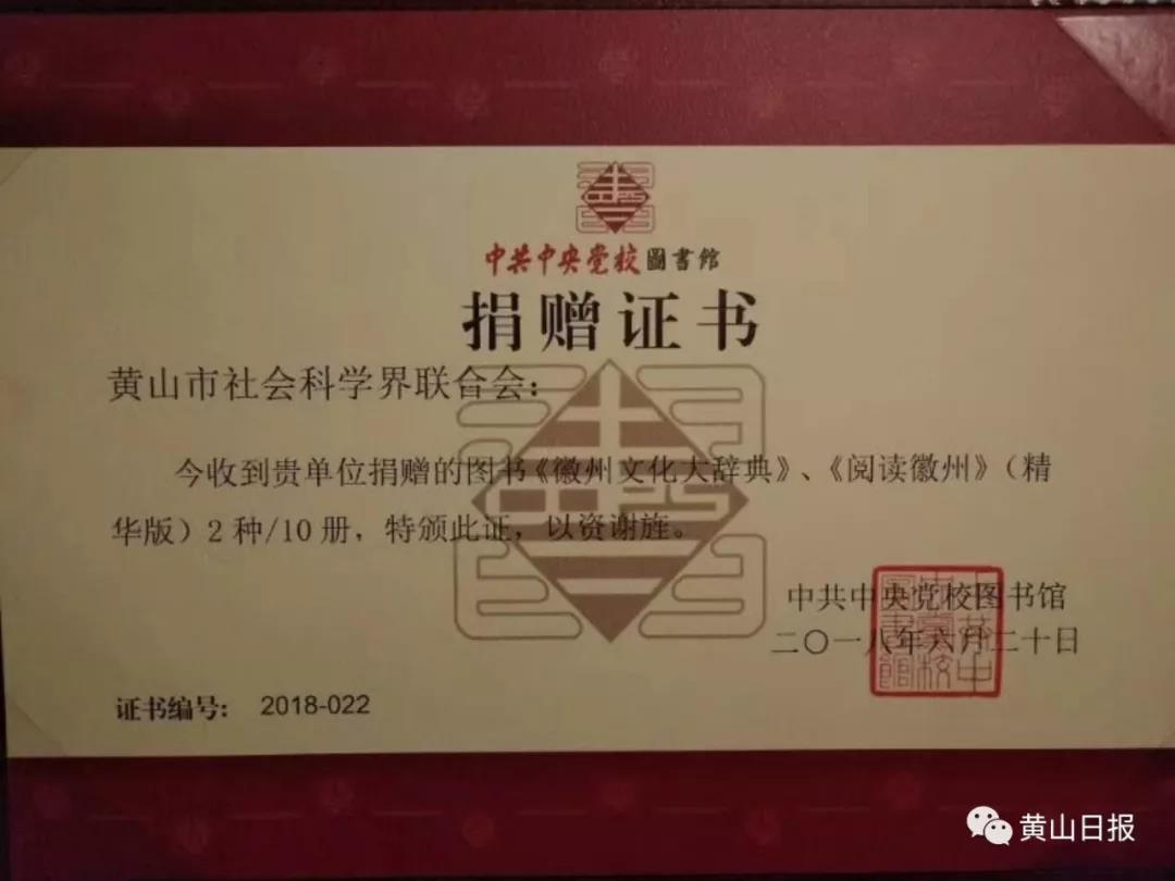 据悉,黄山市社科联、歙县县委向中央党校图书馆、中国马克思主义研究基金会赠送了《徽州文化大辞典》、《阅读徽州》、《古徽州官吏勤廉史?!?、《王茂荫年谱》、《陶行知家书》、《徽州廉政楹联辑揽》等图书。
