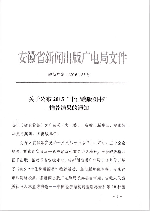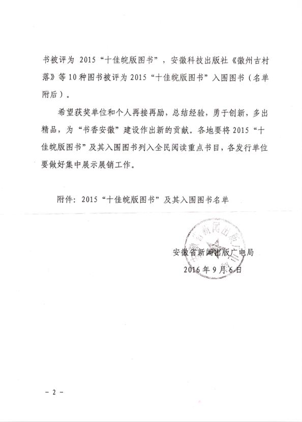 关于公布2015“十佳皖版图书”推荐结果的通知