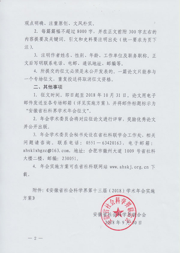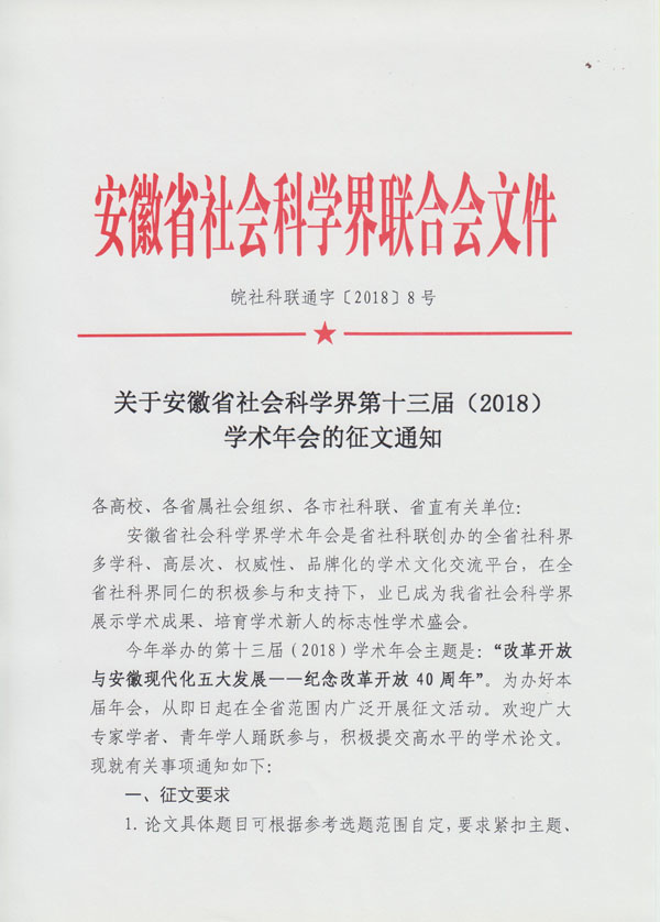 关于安徽省社会科学界第十三届(2018)学术年会的征文通知